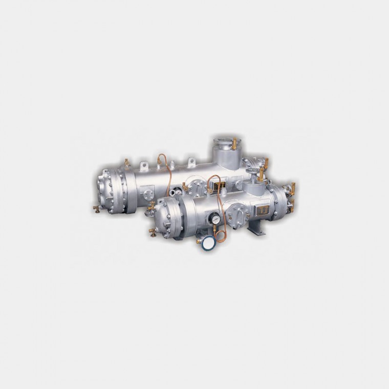 發(fā)電廠的表面冷凝器通常是直管式熱交換器。由于流體可以在同一側(cè)進(jìn)入和排出,因此通常采用兩次和四次設(shè)計(jì)。這使得結(jié)構(gòu)要簡(jiǎn)單得多。通常有擋板引導(dǎo)流體通過(guò)殼側(cè),因此流體不會(huì)在殼側(cè)短切,導(dǎo)致無(wú)效的低流量。這些通常附著在管束上,而不是殼上,以便管束仍然可以移除以維護(hù)。